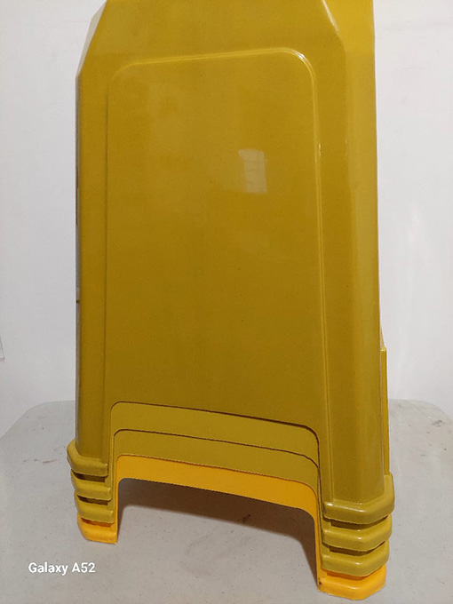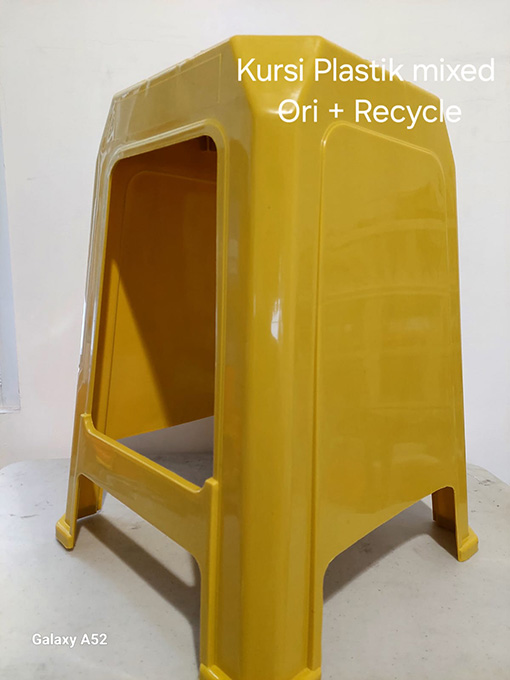 Untuk kursi super ekonomis bahan ( 100% full recycle ) minimal pesan 1000 pcs sudah termasuk bahan kalsium anti pecah, diluar tambahan anti uv. Berat kursi lebih berat dibanding bahan 100% pp orisnil dan campuran Warnanya lebih pudar dari bahan campuran ( ori+recycle)
