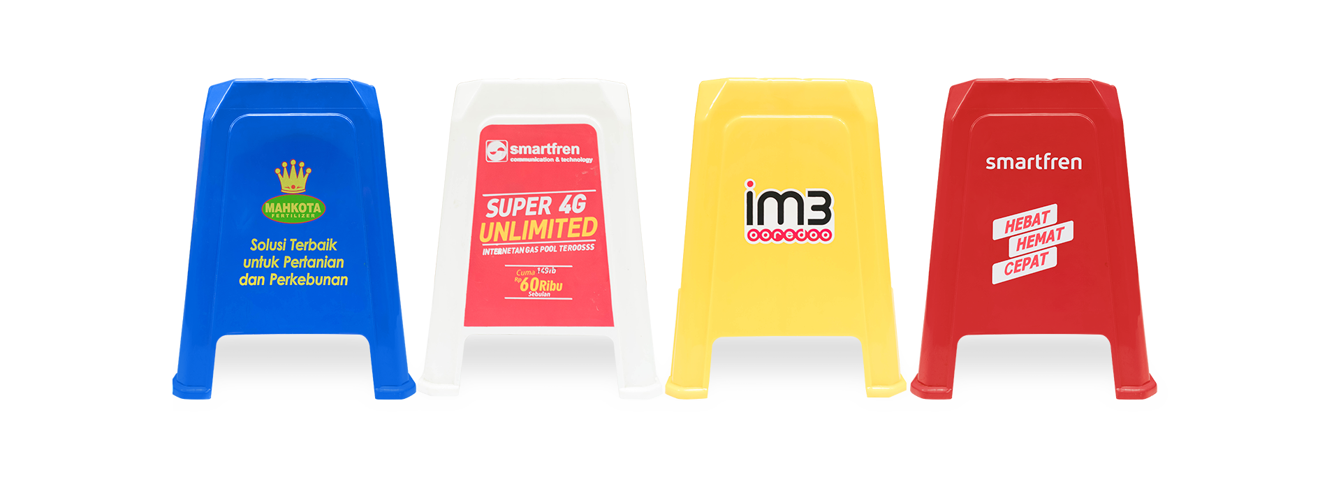 Selain harga yang terjangkau, kursi plastik bakso buatan kami juga memiliki mutu yang baik dan sudah digunakan oleh perusahaan besar seperti GoPay, IM3, Moto Mobil, Porto, Vivan dan Smartfren untuk kebutuhan promosi dan showroom mereka.